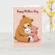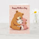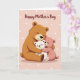This card shows three soft-edged cartoon bears cuddled close, with a large brown bear holding a small white cub while a smaller pink bear leans in, arm wrapped around the group in a friendly, affectionate squeeze ❤️. Their eyes are closed and their tiny smiles suggest a calm, trusting closeness, like a quiet moment shared between loved ones. The background is a gentle pastel pink, sprinkled with irregular white polka dots that add a light, celebratory look. Across the top, the text reads “Happy Mother’s Day” in a flowing dark tone that stands out clearly against the pale backdrop. Subtle shading along the bears’ cheeks, paws, and bellies makes them look plush and cozy, as if you could feel the softness. The trio sits centered on the front, leaving open space around them so the hug feels like the main focus 🌼. The brown bear appears behind and slightly above the others, with the white cub in the middle and the pink bear tucked to the side, all framed by the dotted pink background.