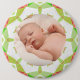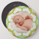 Soft Pretty Green Pastels Custom Merry Christmas Photo Picture Ornament Pin Button Badge. Jolly and Festive Pastels Green and Juicy Orange Custom Christmas Photo Picture Frame Round Christmas Party Clothes Decoration. A soft colorful ornament for your pretty green and orange dopamine dressing drip. The frame design is a merry geometrical abstraction pattern take on traditional color block festive designs. In pastel colors of winter tree green and bright merry orange for a Winter Wonderland design. Personalize it by replacing the photos with your own for an early gift for family and friends to celebrate Christmas. The stock photo shows a baby sleeping. Cherish your Yuletide memories. A great gift for best friends and brothers and sisters, or new parents and grandparents. A budget friendly keepsake gift, for family celebrations or a baby’s first Christmas.