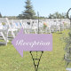 Pretty, modern, minimalist and trendy outdoor wedding directional reception sign features a soft pastel purple background (Pantone's 2022 color pick "Orchid Bloom") with white customizable text blocks in modern fonts