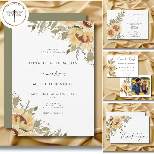 Celebrate your love with our boho rustic wedding response card with dinner choices, designed to set the perfect tone for your special day. Featuring vibrant watercolor sunflowers in rich golden yellow, earthy brown, and soft green, gracefully positioned in opposite corners, this design blends natural charm with modern elegance. The clean, contemporary font adds a fresh touch, making it ideal for couples who love effortless beauty and rustic romance. Sunflower graphics created by Verya Studios. Created by Simply Farmhouse Press.