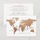A pale copper rust world map travel, hotel, accommodation, website, and transportation details destination wedding enclosure card is printed with an authentic-looking faux foil effect. Our modern wedding abroad theme invitation suites get guests excited to plan their trip for your wedding! The Custom Paper Works Zazzle Shop has full coordinated sets of wanderlust and journey theme decor.