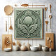 Soft vintage tones of sage green are perfect for accent tile that fuses Art Deco with modern elegance. The design has botanical accent with a stylized form of tree shaped from leaves in artistic splendour. Perfect for home accent, kitchen backsplash tile, bathroom and wall accents. The design perfectly blends with matching aesthetics preventing stains from oil on kitchen wall and food on countertops and soap etc. on bathroom tiles. These tiles can elevate decor with a luxurious accent in home and kitchen.