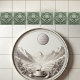 Soft Sage Green Art Deco Symmetric Botanical Motif Ceramic Tile