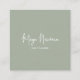 A sleek and stylish square business card featuring a solid and elegant soft sage green background with botanical vibes with your name or company name in an elegant signature script. Fully customizable to match your brand identity—edit the background color, text, and logo effortlessly.