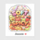 Playful design representing gentle personalities with a bold side. “Soft But Spicy” is a fun internet phrase loved by meme culture fans. Perfect sticker art for laptops, phone cases, and casual apparel.