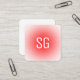A square business card template with initials placed on a soft circular spot. Name and profession/job title along with telephone, email and website address in black on the reverse side on a white background. This template is also a good starting point for further customization.