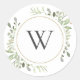 Soft Spring Leaves Greenery Monogram Initial Classic Round Sticker