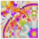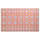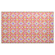 Fabric in a tie dye pattern in soft, spring flower inspired, shades of pink, green, peach and violet