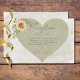Embrace the free-spirited charm of boho elegance with our enchanting wedding reception enclosure card. Featuring a soothing sage green watercolor wash background, the centerpiece is a darker sage green heart adorned with clusters of soft yellow, brown, and sage green sunflowers. The modern script font heading and clean, casual body text offer a contemporary touch, perfectly balancing style and ease. This design beautifully captures the essence of your love story, inviting your guests to celebrate in a setting of natural beauty and relaxed sophistication. Sunflower graphics created by Verya Studios. Created by Simply Farmhouse Press.