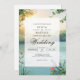 A serene natural backdrop evokes a tranquil, romantic mood. The gentle light and lush greenery create an atmosphere of peaceful celebration. This design feels airy and hopeful.