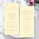 Present your dinner selections to your guests with this elegant wedding menu, perfectly complementing your Verona Sunset stationery suite. The lemon chiffon background and burnt orange lettering create a warm and inviting feel. This menu is a beautiful and functional detail that ties your reception décor together, letting your guests know what delicious meal awaits them.