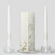 Elegant personalized wedding unity candle set featuring an image of white baby's breath. Easily customize this modern set for your special day!