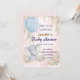Create a heartwarming first impression with this beautifully designed blush teddy bear baby shower invitation. Featuring an adorable watercolor bear placed at the bottom center, delicate floral accents, and a softly textured pastel balloon, this design blends elegance with sweetness. The gentle blush wash background and clean center space provide the perfect area for adding your personalized event details.