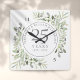 Soft Watercolour Leaves 25th Wedding Anniversary Square Wall Clock