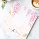 This personalized notepad features delicate cascading wisteria flowers in soft pastel tones, creating a serene and elegant watercolor design. Perfect for floral lovers, garden enthusiasts, and those who appreciate romantic stationery. Customize the text at the bottom for a personal touch, making it ideal for journaling, note-taking, or thoughtful gifting.