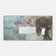 This pastoral customizable desk mat features a soft-toned illustration of a woman’s silhouette overlaid with butterflies and heart shapes, floating into a dreamy blue-gray sky. the image blends emotional symbolism with a serene, ethereal palette. you can customize the text.