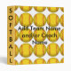 softballs on front and back of binder. the word SOFTBALL is on side of binder. Make sure you click customize and delete or change text before buying. Add team name and or coaches name on the front or delete. If you like, delete SOFTBALL off side of binder and put team name or coaches name there.