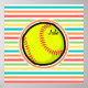 Cool, cute yellow softball design on colorful red, orange, yellow, green, blue, white rainbow stripes pattern. Great gift for softball players or sports fans!