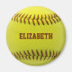 Softball Custom Ball yellow ball with brown text you can personalize with your own name. Perfect gift to softball player