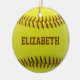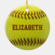 Softball Custom Ball Ornament yellow ball with brown text you can personalize with your own name. Perfect gift to softball player