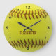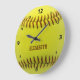 Softball Custom Ball Wall Clock yellow ball with brown text you can personalize with your own name. Perfect gift to softball player