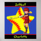 Softball Girls Star Batter Swing Personalized Poster