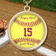 Softball Necklaces with her Jersey NUMBER and NAME. Choose several finishes, Silver plated, Sterling Silver Softball Necklace, Gold Finish and select the style, round, square and softball locket. CLICK MORE on right to Type your text or delete in * 2 Two Text Box Templates. CALL Linda for Changes or Help: 239-949-9090.