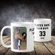 Softball Player Name Number Team 2 Photos Coffee Mug. A perfect gift for the softball player in your life - a personalized mug that showcases their love for the game! This mug features two photos of the player in action on the softball field, giving them a constant reminder of the thrill of the game. The mug also includes the player's name, number, and team name, making it a truly personalized gift that they will cherish for years to come. This mug will bring a smile to their face and keep them motivated to keep playing their best.