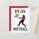Softball Player Play Softball Postcard original design by Nisha Prabhu. Get ready to celebrate the spirit of the diamond with our vibrant postcard! Perfect for players, fans, and anyone who loves the thrill of a good game. This postcard showcases a dynamic illustration of a determined player in mid-swing, capturing the energy and passion of softball! Bold colors and dynamic design that pop off the card. Ideal for sending cheers of encouragement, team announcements, or just sharing your love for the sport. Whether it’s for a tournament, a team fundraiser, or simply to spread the softball spirit, this postcard is the perfect way to connect with teammates and friends.