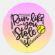 Funny softball inspired design that reads, "Run Like You Stole It" with a home plate and big yellow softball.