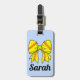 This customizable bag tag features a portrait of a ribbon bow modeled after a softball.