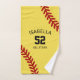 Bring team pride to the field or gym with this personalised softball towel, designed by The Arty Apples. Featuring a yellow and red stitching background inspired by a real softball, this stylish towel can be customised with the player’s name, team name, and jersey number — perfect for athletes, coaches, or fans.