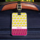 This patterned luggage tag has a softball theme and has background colors of deep and pale pink and white. Softballs and softball bats are on the front, and more softballs decorate the back. You can personalize with a name or other text on the front, and on the back add your preferred message and contact details.