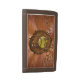 Softball Wallets for Softball Team Gift Ideas or purchase One. Worn out glove and softball shows the hard work and dedication of the players and coaches. Cool golden grunge background with softball in the softball glove.
