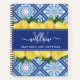 Stylish Softcover Lemons and Mediterranean Blue Tiles Monogrammed Artwork Sketchbook. Colorful and trendy watercolor lemons, greenery leaves on a blue tile background with a custom monogram template and elegant calligraphy script name template. This pretty green, yellow, blue and white botanical notebook drawing pad for sketches that would make a thoughtful gift for the artsy mom, daughter, grandma, etc.
