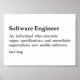 This humorous poster defines what a software engineer is: "An individual who converts vague specifications and unrealistic expectations into usable software."