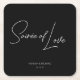 Elevate your wedding or special event with this elegant 'Soirée of Love' custom coaster. Featuring a minimalist design with sophisticated typography, this coaster is the perfect keepsake for your guests or a stylish addition to your event decor.