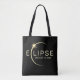 Carry a stylish reminder of the historic August 12, 2026 solar eclipse with this elegant eclipse tote bag. Featuring a sleek black background with a glowing crescent eclipse and radiant starburst design, this tote blends celestial beauty with everyday practicality.