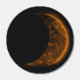 The orange boiling sun is eclipsed by the shadow of the dark moon, as seen from space during a solar eclipse event. This could be the phase of a partial or total solar eclipse