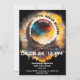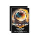 Cool, modern, sci-fi celestial watercolor eclipse design on a black background. Horizontal solar eclipse viewing party invitation. Easily customize with your information. Perfect for space and astronomy enthusiasts. Celebrate the next 2025 partial solar eclipse in style.
