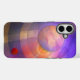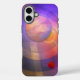 This case has an artistic abstract cosmic design with geometric shapes and beautiful, transparent / watercolor like colors (purple, yellow, orange). This product can be customized by adding text.