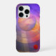 This case has an artistic abstract cosmic design with geometric shapes and beautiful, transparent / watercolor like colors (purple, yellow, orange). This product can be customized by adding text.