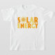 Fun Solar Energy design has pretty sun graphic and Solar Energy slogan in yellow and orange.