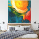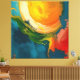 A blazing sun bursts through waves of color and energy, as if the world were being born in vibrant brushstrokes. The movement of shapes evokes wind, sea, and fire in a cosmic dance of light and creation.
