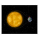 The Earth getting its battery recharged by the Sun using jumper cables to connect to the Earths poles, red on top, black on bottom.
