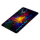 A slightly psychedelic, wavy, swirling, multi-colored, fractal resembling electromagnetic emissions emanating from the sun. The image is superimposed on a starry background. Add your own text.