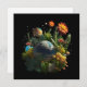 The colors of the planets blend seamlessly with the vibrant colors of the flowers to evoke a sense of harmony and awe.