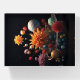 The colors of the planets blend seamlessly with the vibrant colors of the flowers to evoke a sense of harmony and awe.