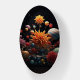 The colors of the planets blend seamlessly with the vibrant colors of the flowers to evoke a sense of harmony and awe.