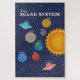 A colorful solar system illustration featuring 8 planets; Mercury, Earth, Venus, Neptune, Saturn, Uranus, Mars, Jupiter and the Sun against a starry, dark blue background. This modern design is both stylish and educational, great as decor & home schooling.
